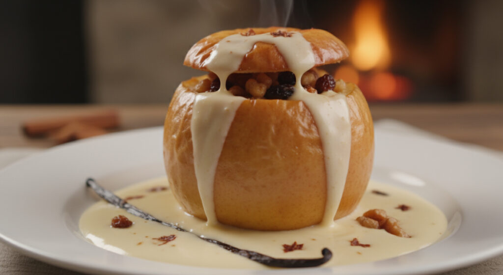Dessert: Bratapfel mit Vanillesoße
