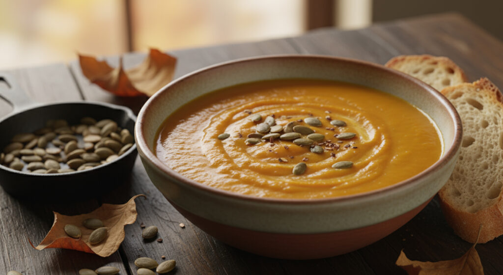 Zwischengang: Kürbiscremesuppe mit gerösteten Kernen